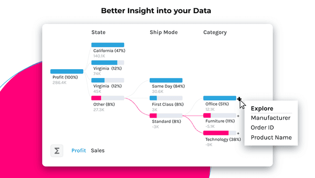 The DrillDownTree extension provides better insights into your data through drill-down actions. Drilling down through a dimension hierarchy will expand the next level of the dimension. It lets you traverse through the data across multiple dimensions to get to the roots. The extension aggregates data automatically and enables drill-down actions. The DrillDownTree is a great data exploration tool for ad hoc analysis and conducting root cause analysis. Governed and secured all within your familiar Tableau environment!
