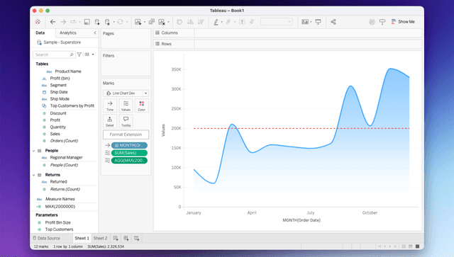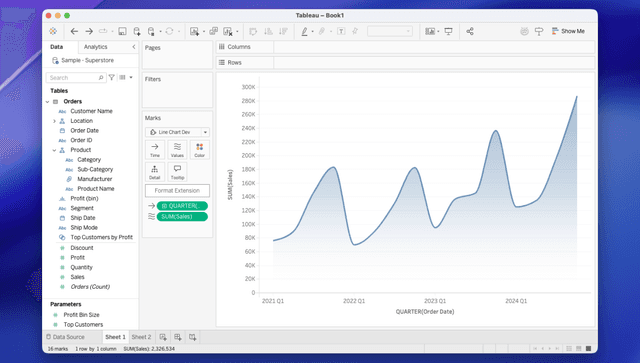 - Seamless Integration: Fully compatible with Tableau dashboards: drag dates to Time, measures to Line, and you're ready to go