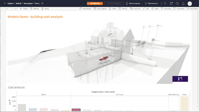 The Modelo extension for Tableau is a ground-breaking tool that connects 3D BIM data to 2D infographics. It enables data flow from 3D modeling software to Tableau and create 3D-integrated infographics with your BIM model. This extension can connect data from construction, operations, tenant portal, leasing, security, and finance departments. It is a BIM integrated, data oriented and AI empowered building brain. Watch the tutorial video at https://www.youtube.com/watch?v=uA7conY9fkk.